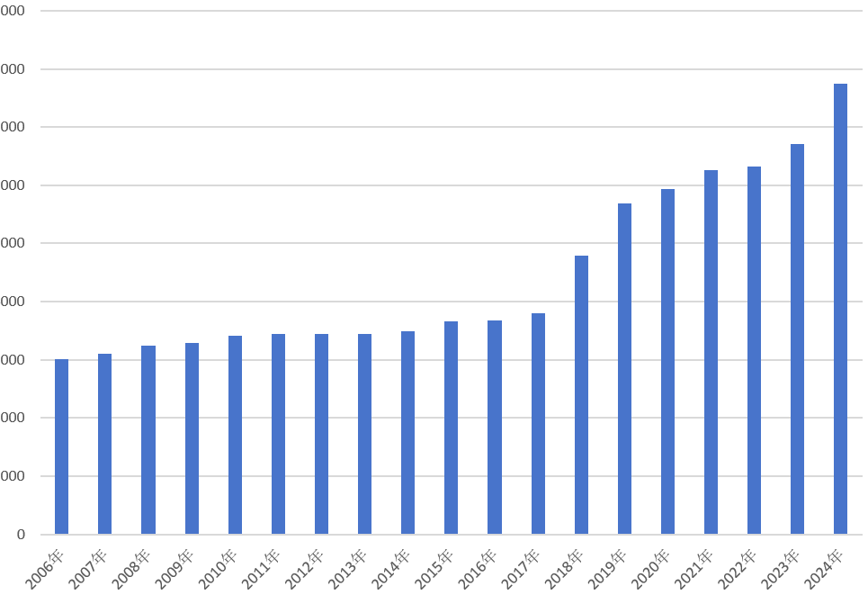 3、2006-2024年歷年可再生能源發(fā)電量數(shù)量統(tǒng)計