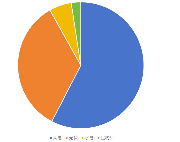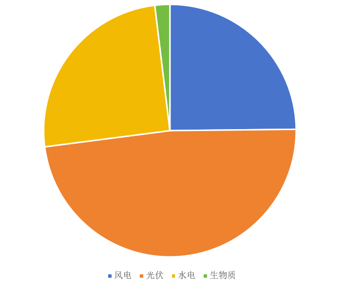 2、可再生能源發(fā)電裝機(jī)容量結(jié)構(gòu)(風(fēng)電+光伏發(fā)電+水電+生物質(zhì)發(fā)電)